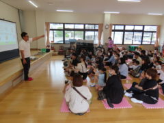 また、年中・年長組は妙高自然の家の方をお呼びして「早寝早起き朝ご飯」のお話をおうちの方と一緒に聞きました。