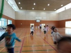 B&Gの体育館で、しっぽとりゲームをして先生たちとたくさん遊びました。