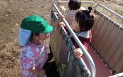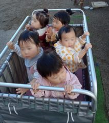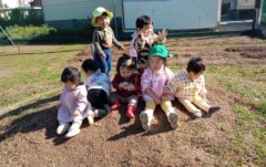 おひさまポカポカの園庭で、お兄さんお姉さんと遊んだりひなたぼっこをして