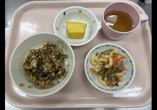 もずくそぼろ丼 和風マカロニサラダ バナナ