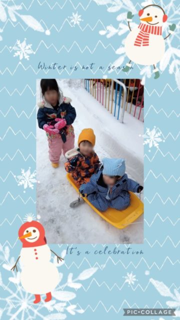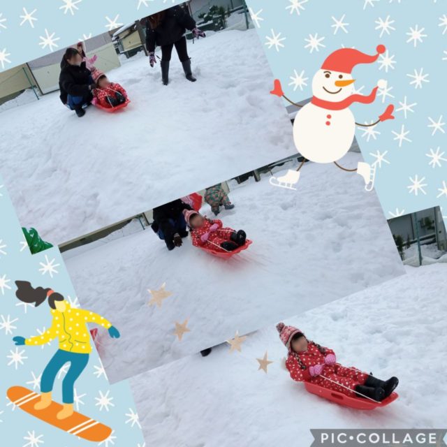 もも組さんが園庭で雪遊びです☃️🛷