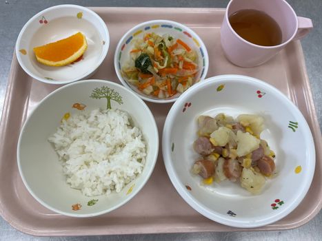 ごはん ジャーマンポテト フレンチサラダ オレンジ