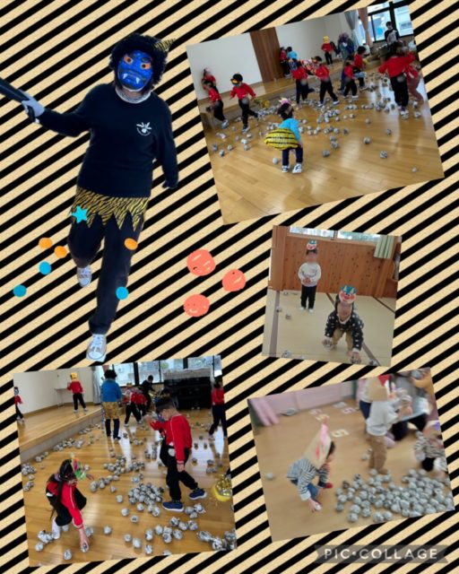 また、節分の由来や豆まきを行う理由など伝統文化を学び、自分の心の中の追い出したい鬼(泣き虫鬼、おこりんぼ鬼などなど)に気づき、鬼退治を通してそれを克服して成長する機会と考えております。