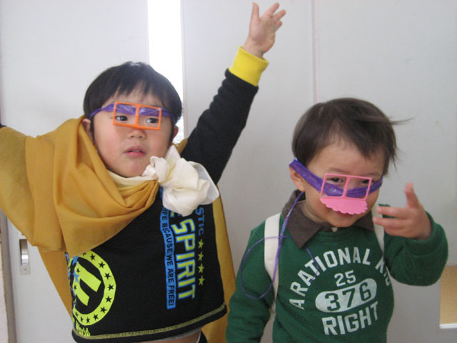 いろんなものをメガネやマントにしちゃうんだ。ナイスアイディアでしょ!