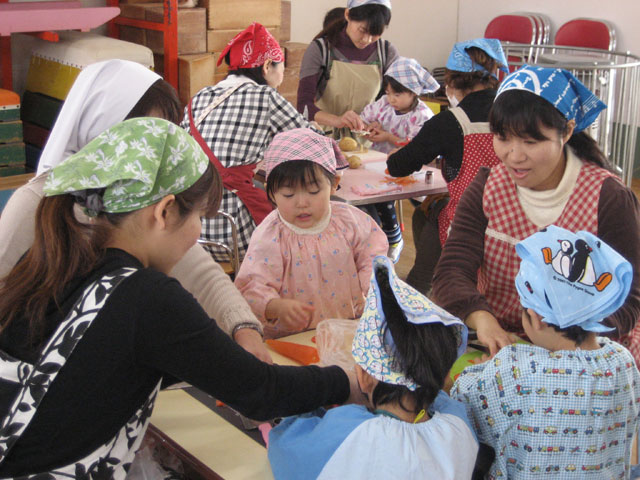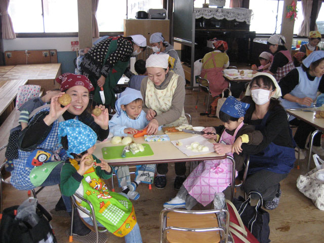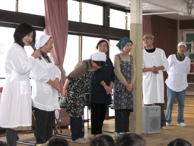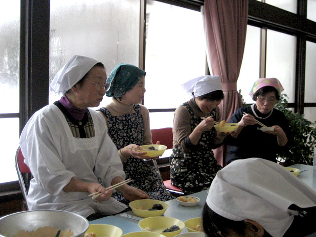 優しいおばあちゃん達が手伝いに来てくれました。“よろしくお願いします!”