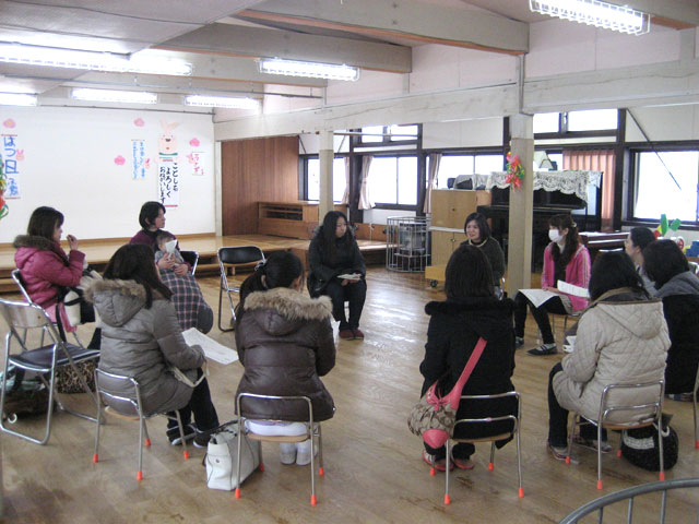 皆で「卒園するってどういうこと?」「1年生になる今の気持ちはどう?」をテーマに、思っていることをグループごとに話し合いました。