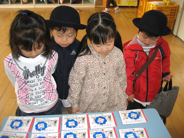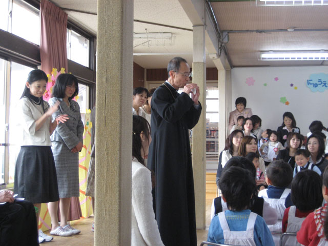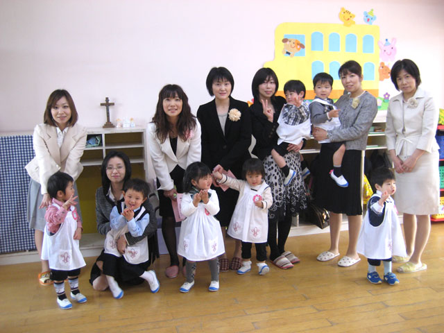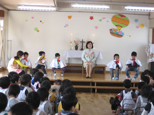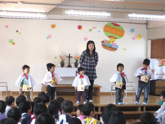 4月生まれは皆で5人、さくらんぼ組の2人のお友達が、初めて祝福をしていただいたり、