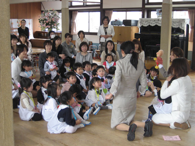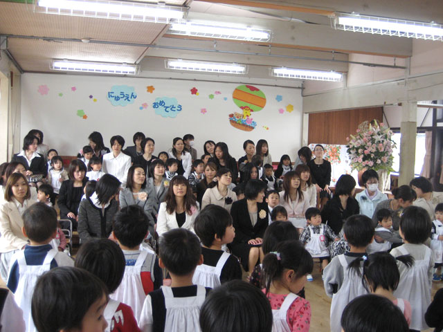 たくさんの拍手で、お兄さん、お姉さん、園長先生、先生たちが迎えてくれました。