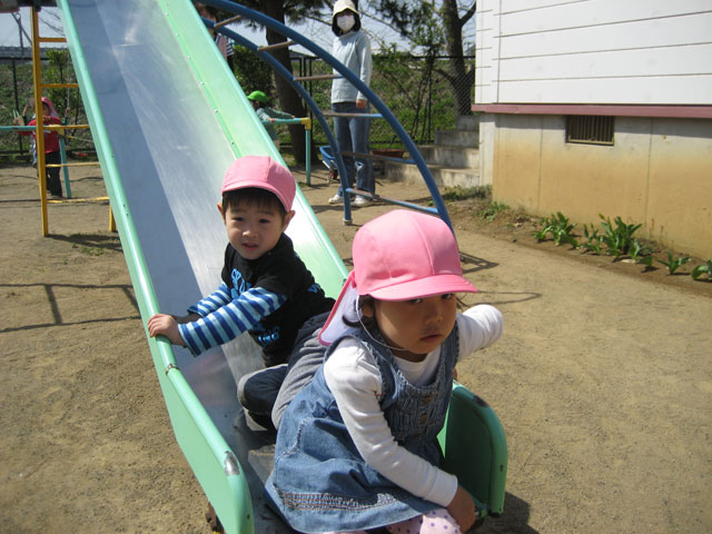 幼稚園は、広~いお庭と遊具がたくさんあって、“楽しいな!”