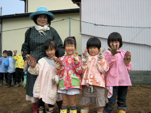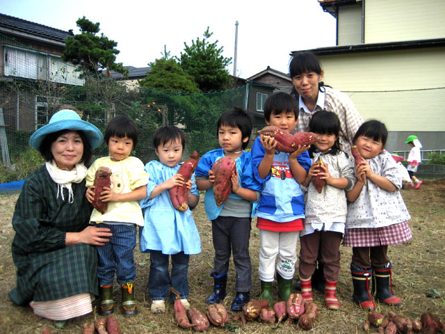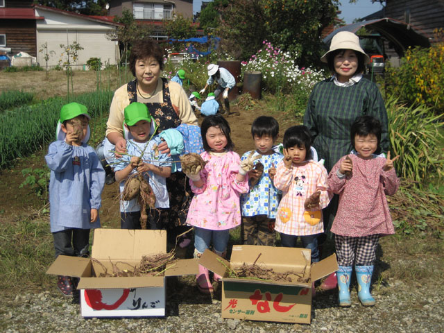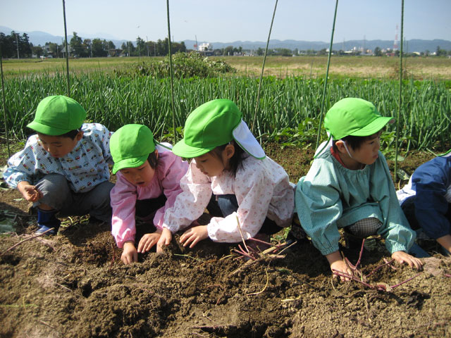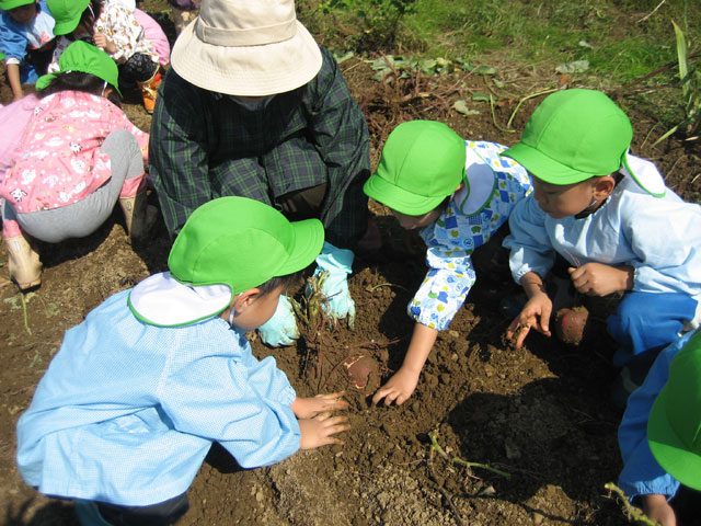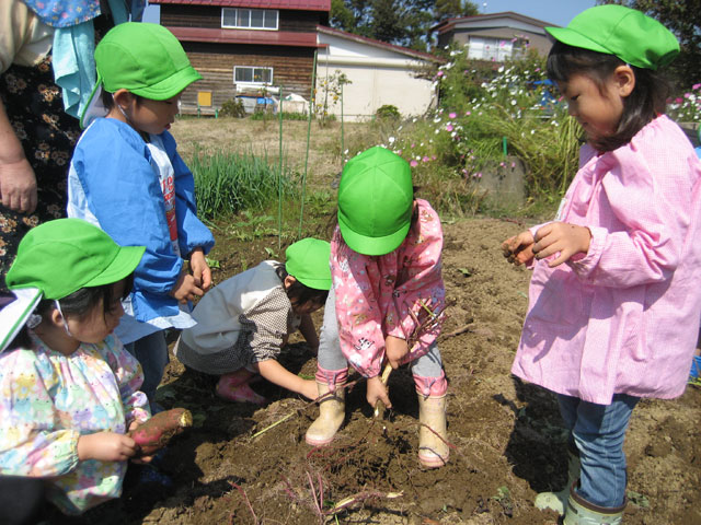 園児のおばあちゃんの家の畑で、おいもほりを楽しみました。