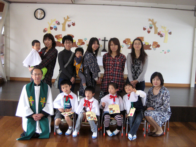実りの秋に生まれたお友達。お母さんと一緒にお食事をいただいたり、祝福を受けて