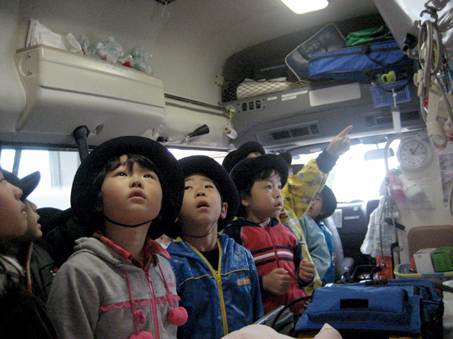 消防自動車、救急車にも乗せてもらい、皆大喜びでした。