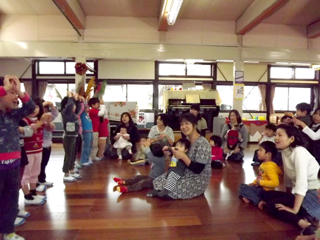 幼稚園のお兄さん、お姉さんのお歌を聴いたり、一緒に踊ったり、ふれあって遊びました。