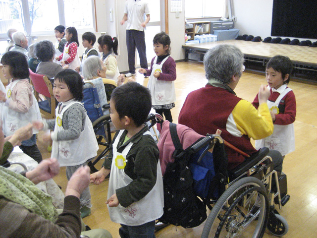 「夕やけ小やけ♪」歌の披露をしたり、「むすんでひらいて♪」を歌って