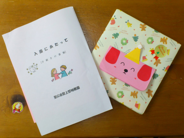 出席カードにシールを貼ったり、名札をつけて入園にむけて予行演習です。
