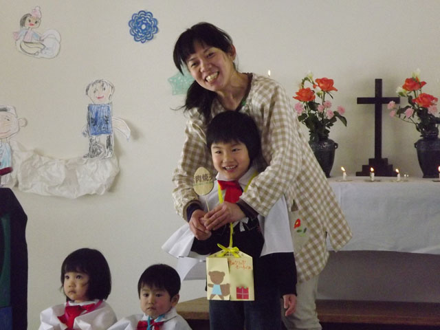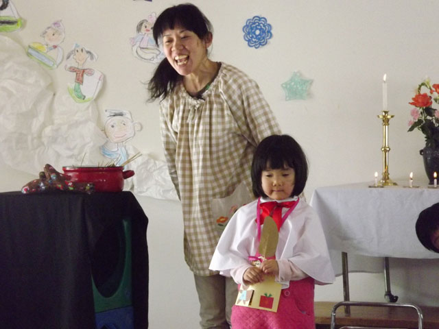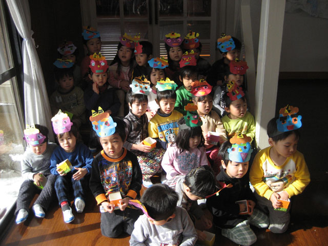 鬼を退治した後は、園長先生演じる、優しい福の神の登場に、子どもたちもホッとした笑顔が見られました。