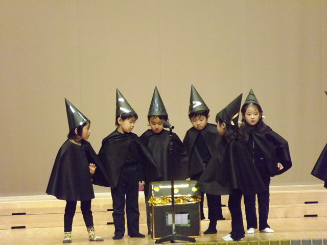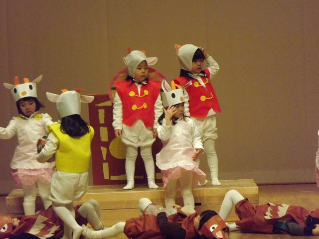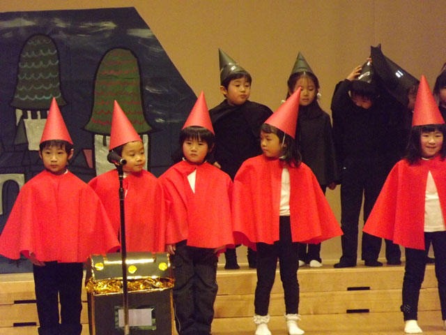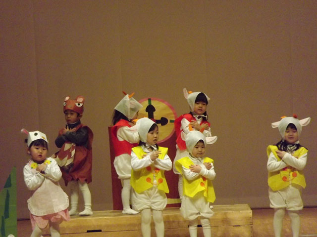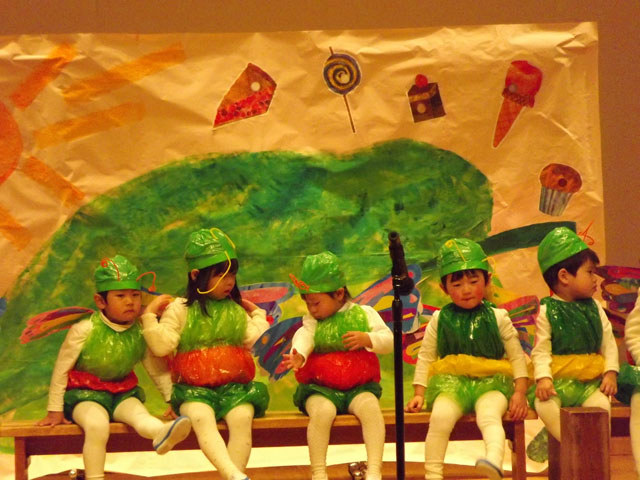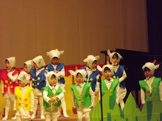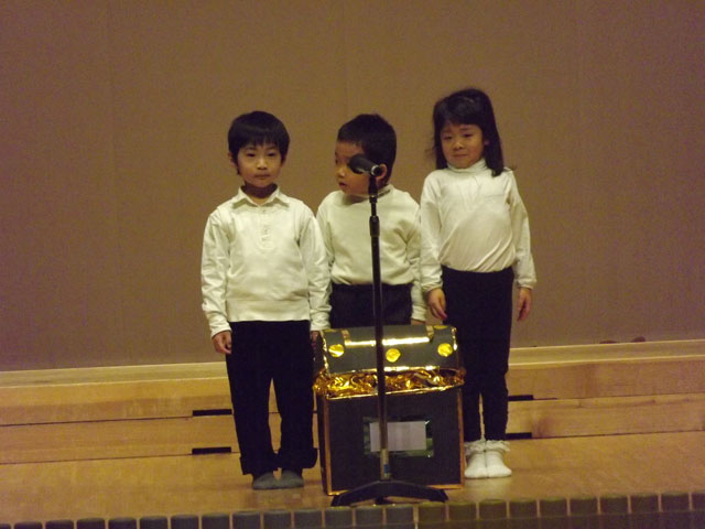 一年間の総まとめの発表会なので、一人でセリフを発表したり、歌ったり、踊ったりと、