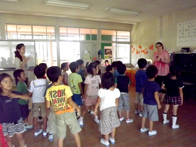 「A・B・C」と発音しながらアルファベットを覚えたり、英語でフルーツバスケットをして