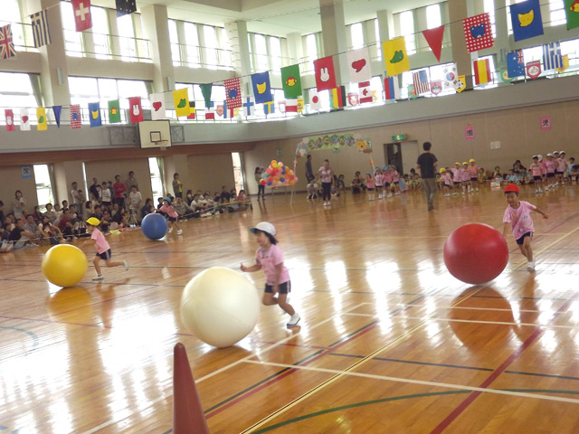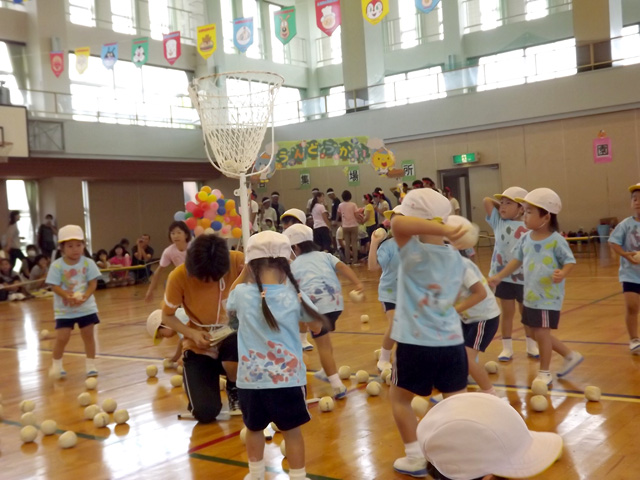 体育館がお花畑のように彩られた中で、たくさんの競技が行われました。