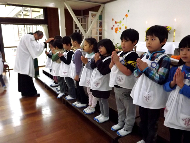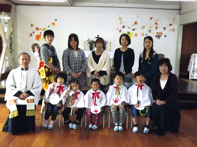 “神様ありがとうございます。”同時に七・五・三幼児祝福式も行われました。