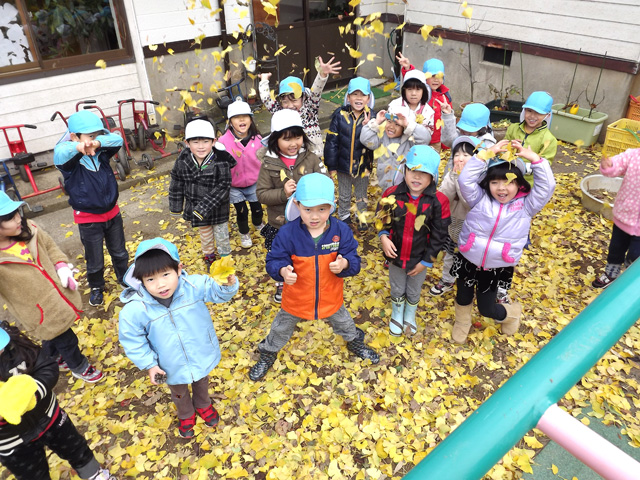 イチョウの葉があそぶようにクルクルと回ったり、風のいたずらに子どもたちも大喜びでした。