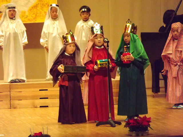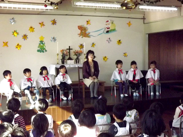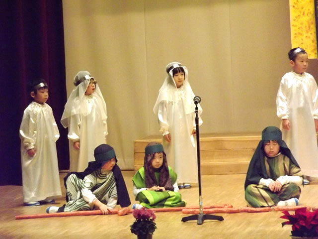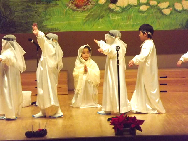すみれ組(年長)が、一人一人力を発揮して「イエス様の御降誕」聖劇を演じました。