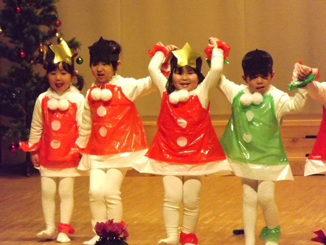 幼稚園のお兄さん・お姉さんと一緒に遊んだり、クリスマス祝会で発表するお遊戯を