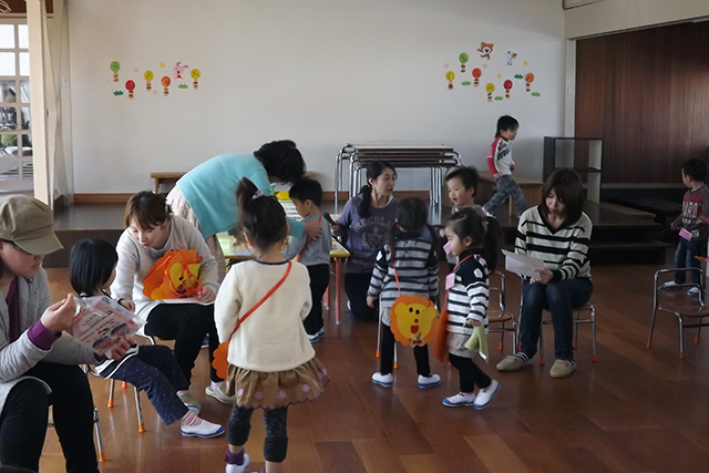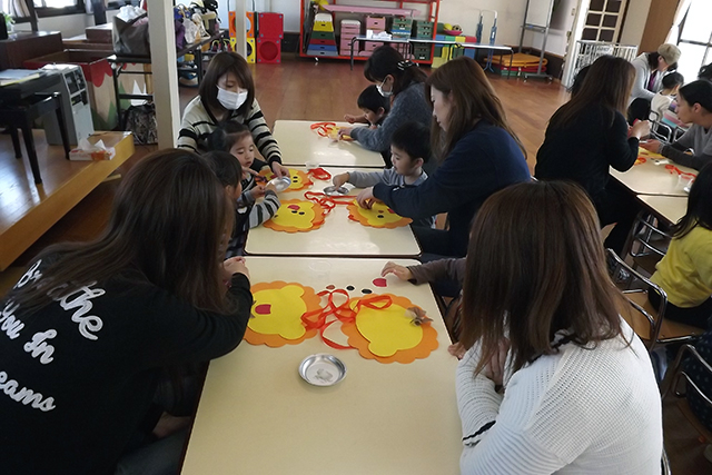 ライオンの制作でバックを作り、園から「たのしい幼稚園」の絵本をお土産にさしあげました。